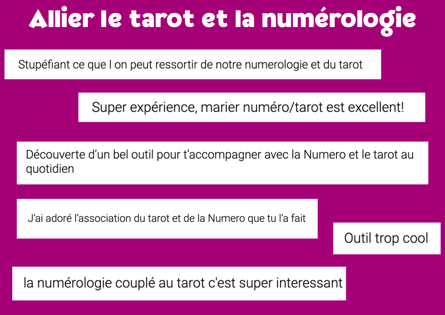 ❌ Tu cherches une formation complète en tarot ou en numérologie (ici, tu vas apprendre des bases solides, mais ce n’est pas une formation ni pour l’un, ni pour l’autre)